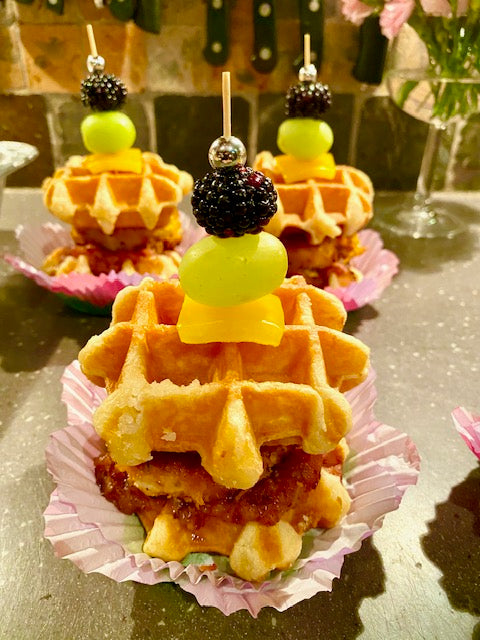 1.) Tiny Waffles with Fried Panko Chicken Patty, Edam Cheese, Green Tomato-Apple Chutney