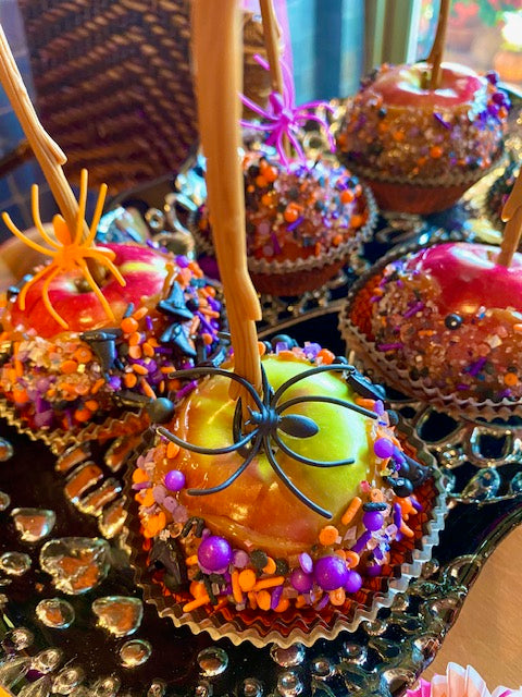 Spider Invested Caramel Apples with Body Part Sprinkles