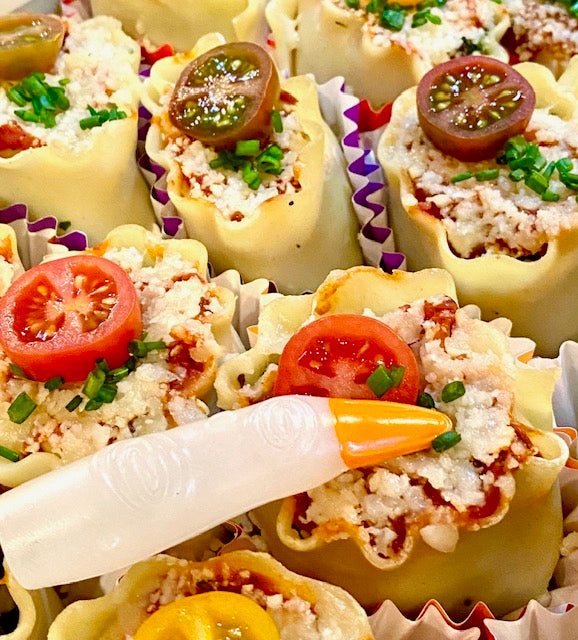 Vegetarian Lasagna Rolls with Fresh Spinach, Mushroom & bloody Marinara Sauce topped with 3 Italian Cheeses